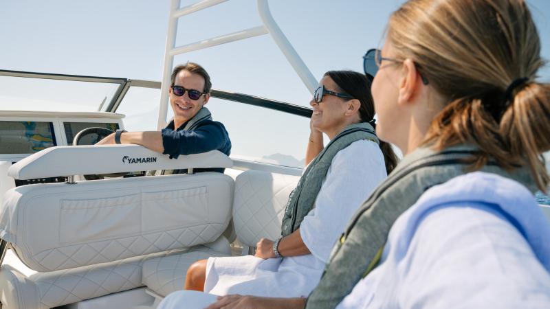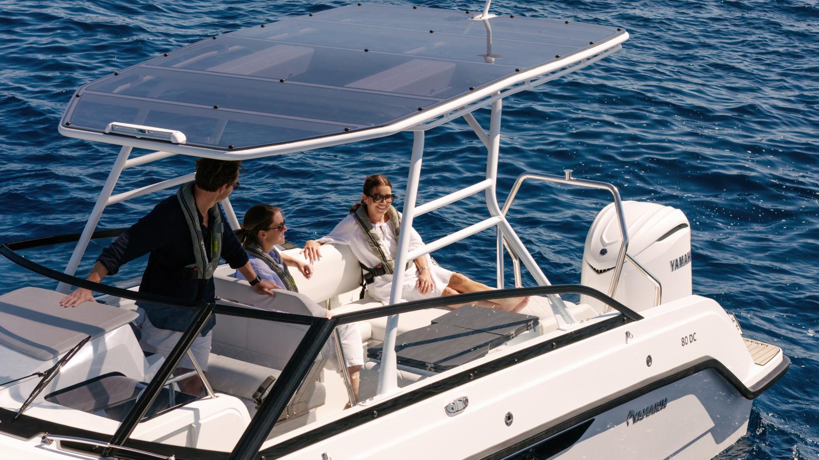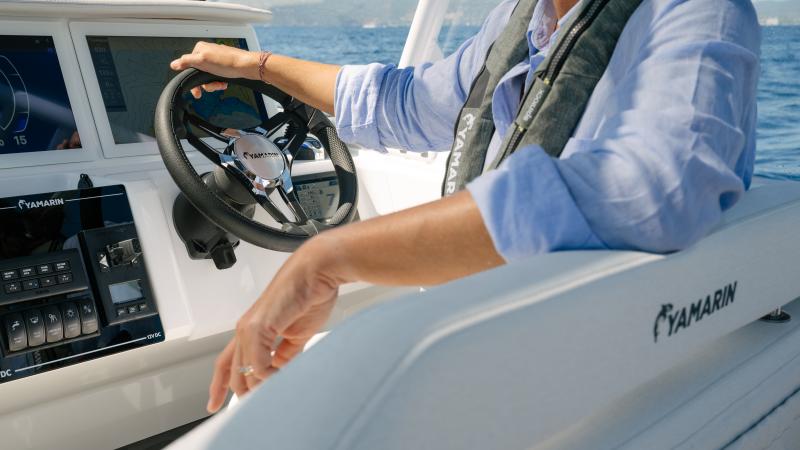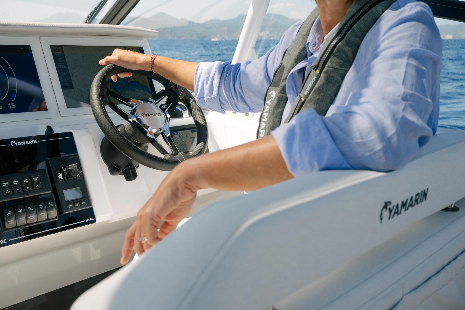 Yamarin 80 DC features a clearly laid-out cockpit, which has been designed with designated places for screens, Yamaha gauges and the joystick that controls the engine, as well as a charging port for phones.
